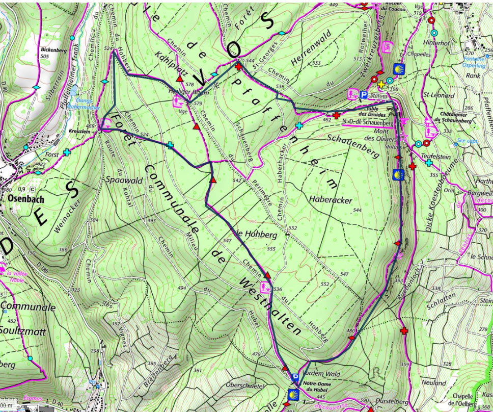 Marche douce proposée : départ Notre Dame du Hubel, Guide Jean-Marie. 10km et 287m de dp. ici parcours