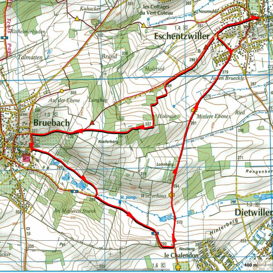 Petite randonnée proche de Habsheim, une boucle : Eschentzwiller, Bruebach, Hauts de Landser, Eschentzwiller.