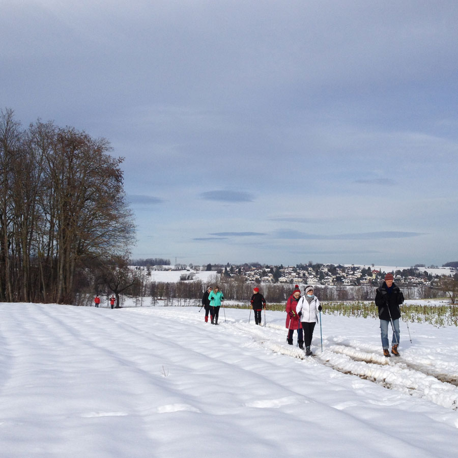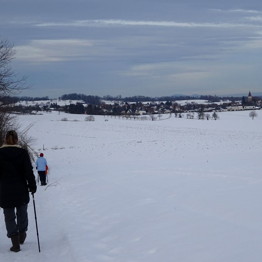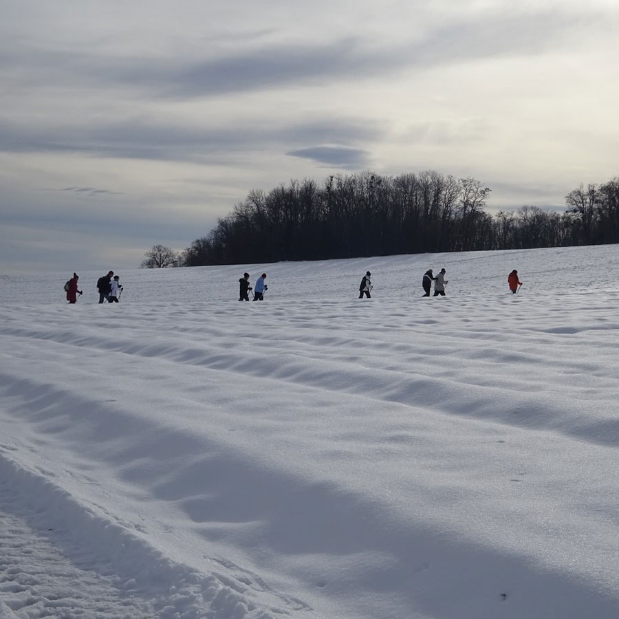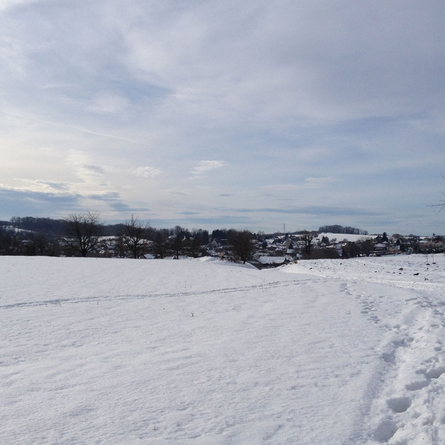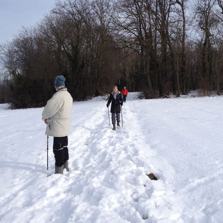 Environ 8 km sur chemins ruraux empierrés, un dénivelé de 100m environ, du beau temps pas trop froid. Des chemins encore couverts de neige, des chemins un peu boueux dus au passage de tracteurs, voitures 4/4, mais cela a été l'occasion de marcher dans un paysage différent.