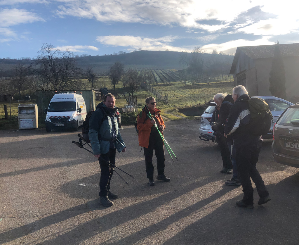 Nous étions 7 pour cette rando au-dessus de Westhalten, à travers le vignoble du Strangenberg et avec passage à N.D du Schauenberg.