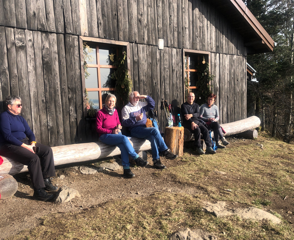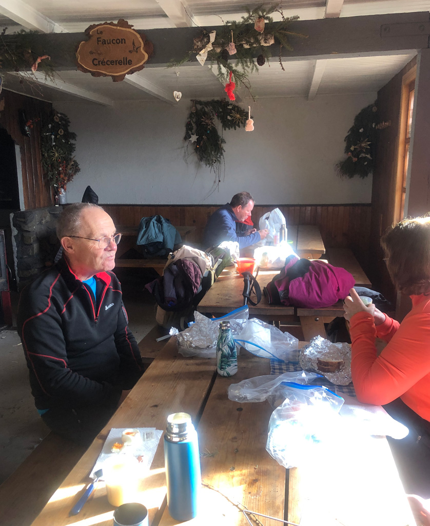 Nous SLS, modestes, nous avons pris notre casse-croûte, pour certains assis sur les bancs extérieurs chauffés aux rayons du soleil, d'autres ont profité de la chaleur de l'abri et mangé à table (le luxe !) .