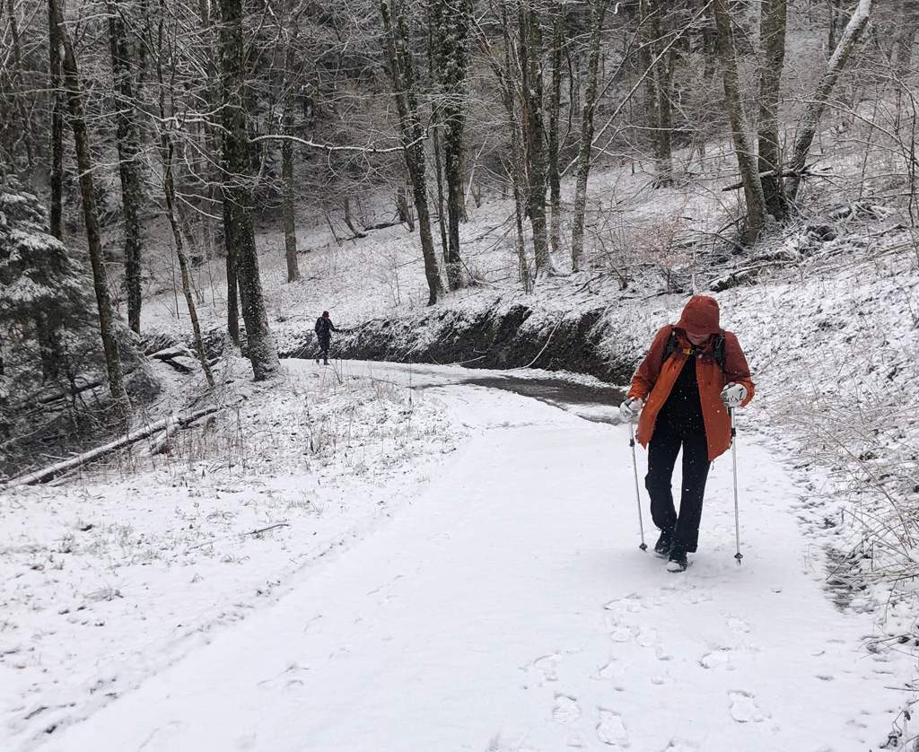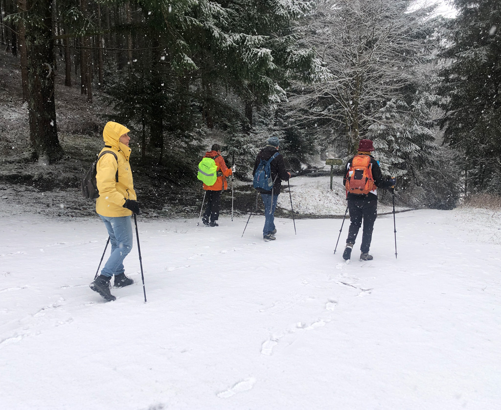 Nous avions décidé de faire la rando alors qu'au départ du local de minuscules flocons tombaient et que des flocons plus importants nous attendaient.