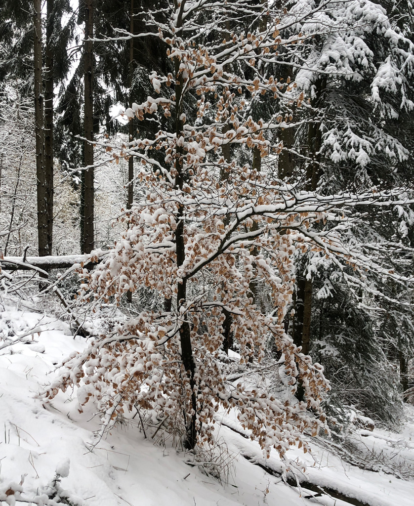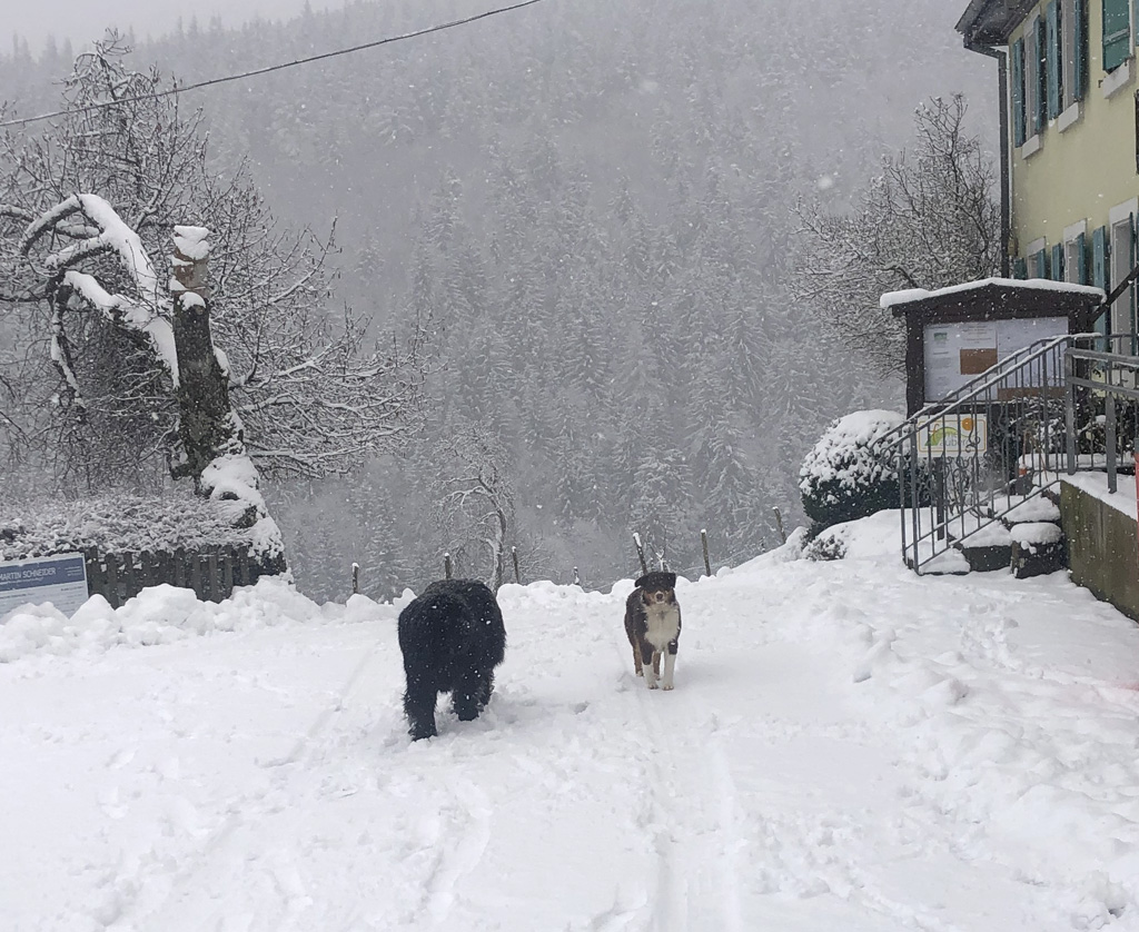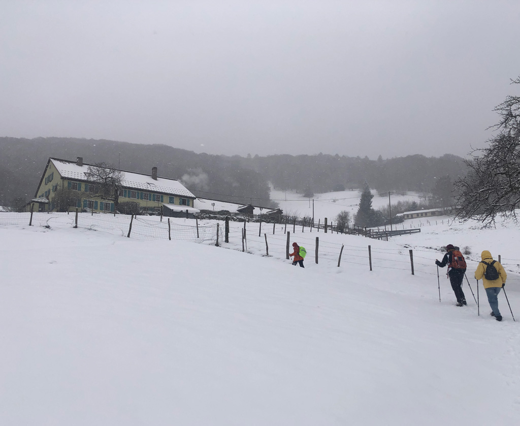 Après la pause, nous avons fait la grimpette "dans et sur" la neige jusqu'au col du Jundenhut (tout de même presque à 1000m). Il a continué à neiger tout au long de la descente vers les voitures. Une belle journée très certainement !