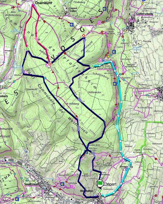 Suivant l'envie, la motivation, la météo, une rallonge peut se faire : et/ou le matin par le chemin forestier vers Osenbuhr et/ou l'après-midi passage par le Schauenberg.